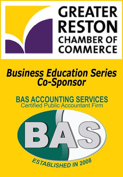 BAS Certified Public Accountant Firm, in partnership with the Greater Reston Chamber of Commerce, is co-sponsoring the chamber's Business Education Series. The mission of the Business Education Committee is to establish the vision and coordinate the delivery of a dynamic series of continuing educational workshops to Chamber members and the community for practical application in the growth and success of their businesses. Held at the Greater Reston Chamber of Commerce Office from 8:30am to 10:00am on the 4th Wednesday of each month, the workshops are open to GRCC Members as well as the general business community. Business Education workshops are complimentary for current Chamber members and $15 for future members. The workshops are designed to support business growth and cover a variety of topics.