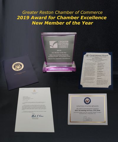 BAS CPA Firm was honored as the recipient of the 2019 New Member of the Year Award for Chamber Excellence by the Greater Reston Chamber of Commerce. The award recognizes the new business member within the Chamber of Commerce which throughout the year continually provided superior service, dedication and commitment to the Chamber and its members, and which was actively involved in one or more committees helping to better the Reston Chamber and to further its mission.